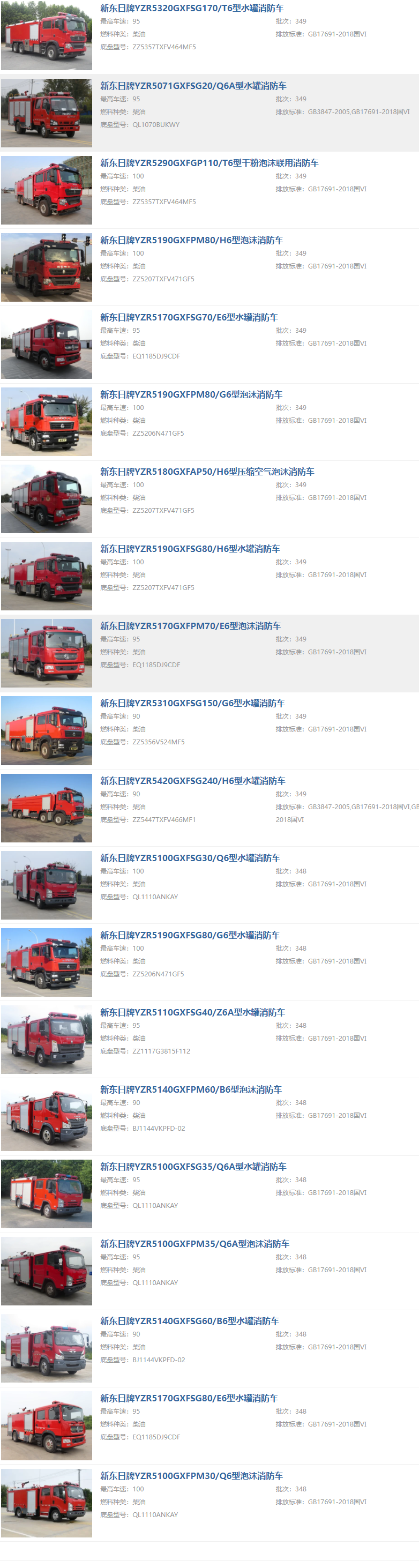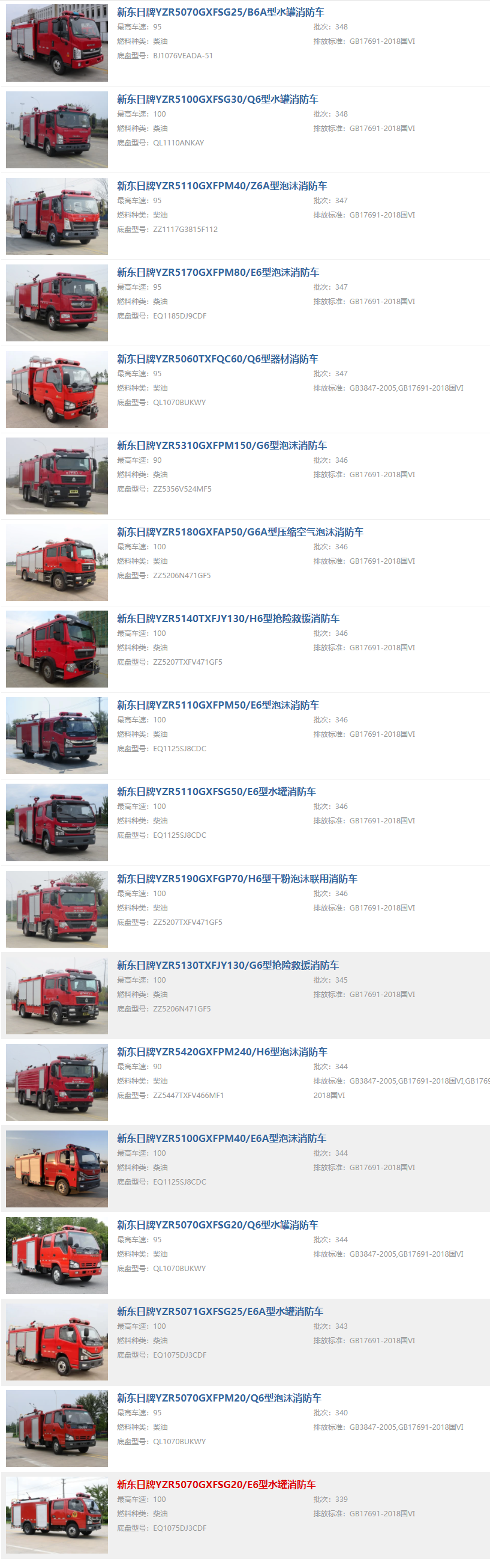 公司車型很齊全,從2-25噸,所有噸位的消防車都有。質量相當不錯。