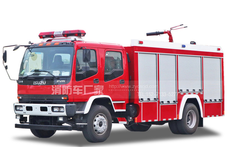 3、干粉消防車:主要裝備干粉滅火劑罐及整套干粉噴射裝置、消防水泵和消防器材等,主要使用干粉撲救可燃和易燃液體、可燃氣體火災、帶電設備火災,也可以撲救一般物質的火災。對于大型化工管道火災,撲救效果尤為顯著。是石油化工企業常備的消防車。
