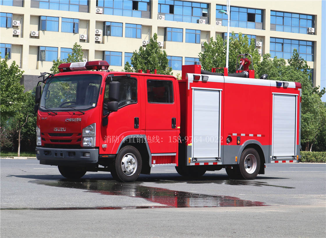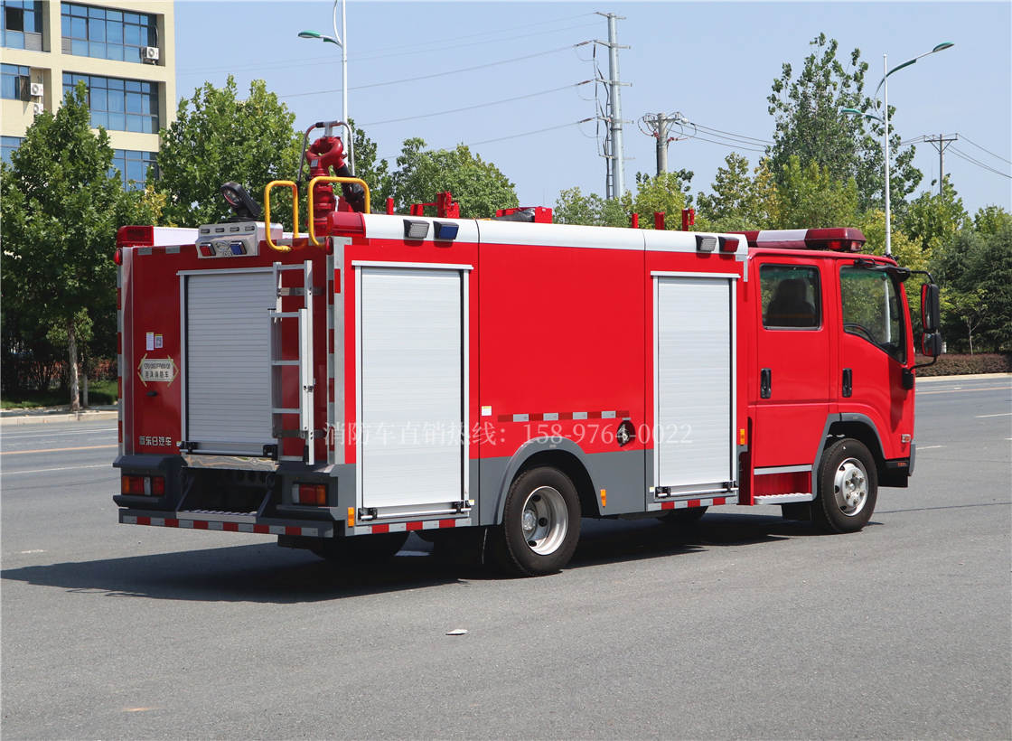 配置:采用五十鈴190馬力,配備茸申CB10/40消防泵,PL8/32W消防炮,2個80mm出水口,1個125mm吸入口,射程水55米,泡沫50米。